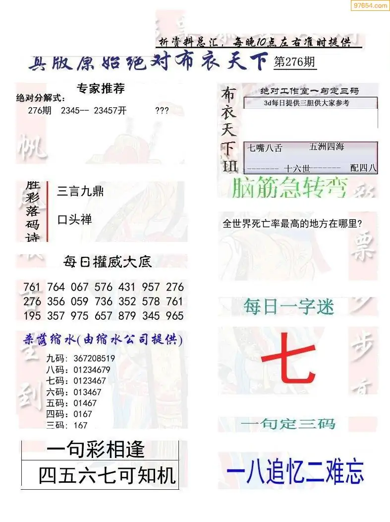 福彩276期3d真精华布衣+布衣早报(转载)