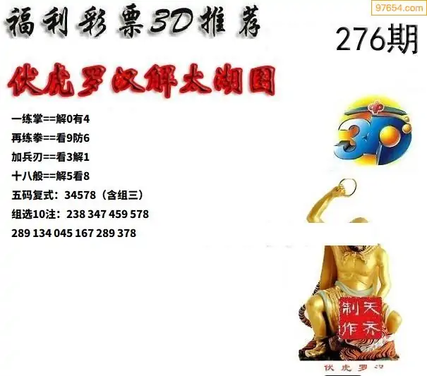 25276期福彩3D正版天宇和值谜
