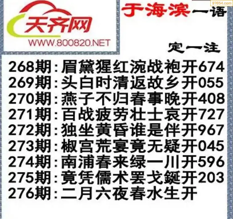 276期3D晚秋(和值)谜:妻尾钱衣 D:和尾上衣
