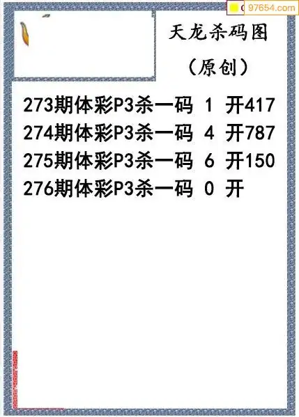 25年276期天龙体彩P3杀码图谜