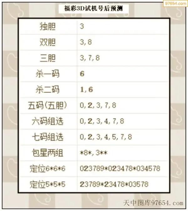 25年276期3d试机号后一语定胆分析汇总