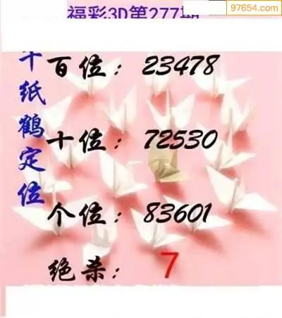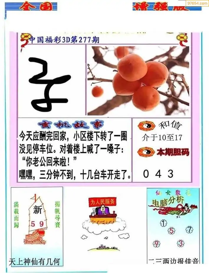 25277期福彩3D正版天宇和值谜
