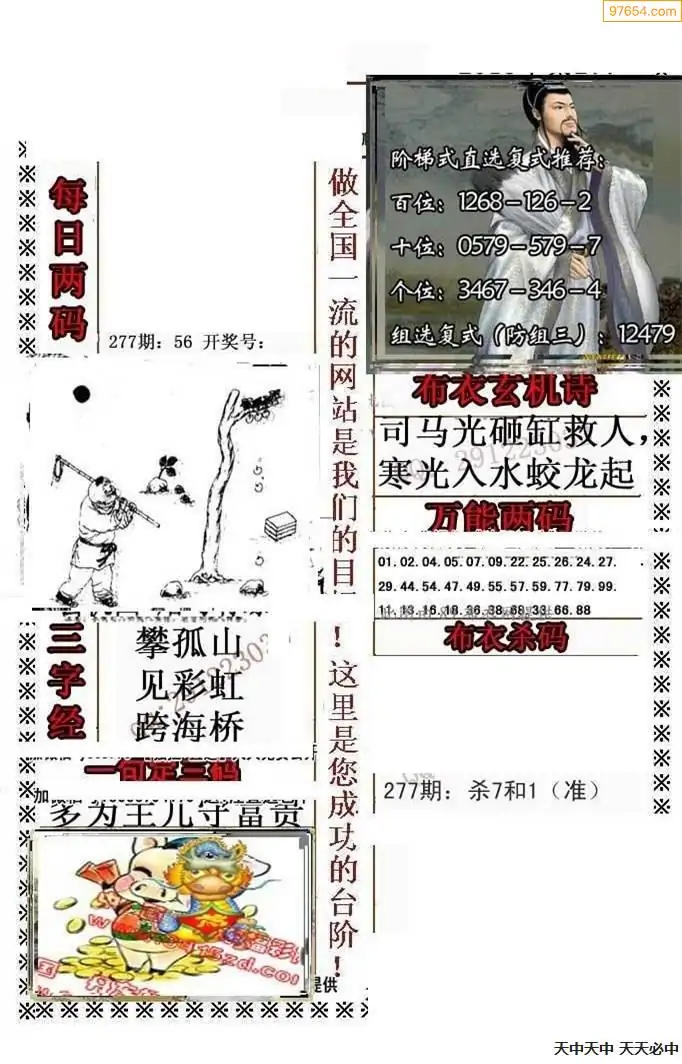 277期3D彩吧图库精华布衣图123456分享