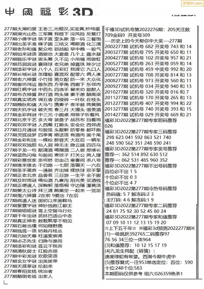 (2)25年277期本期3d图迷汇总