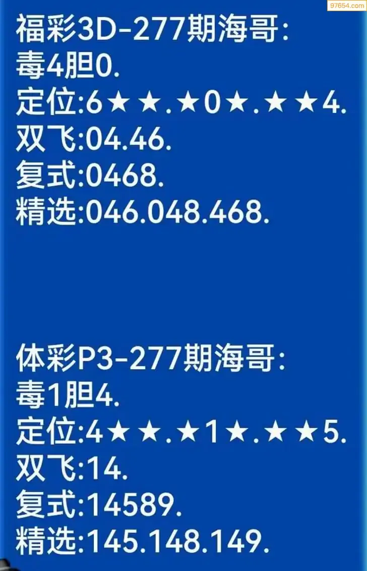 海哥福彩277期3d今日双胆