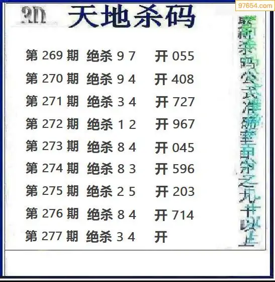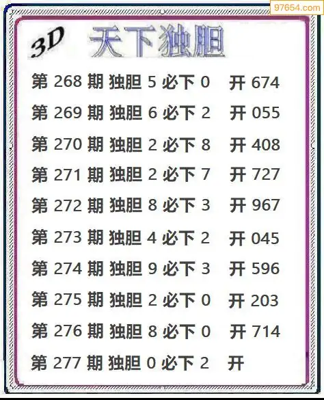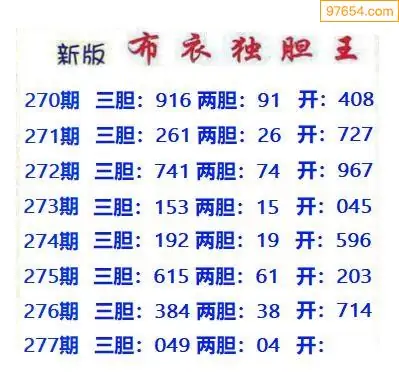 277期97654本站收集胆码出号预测