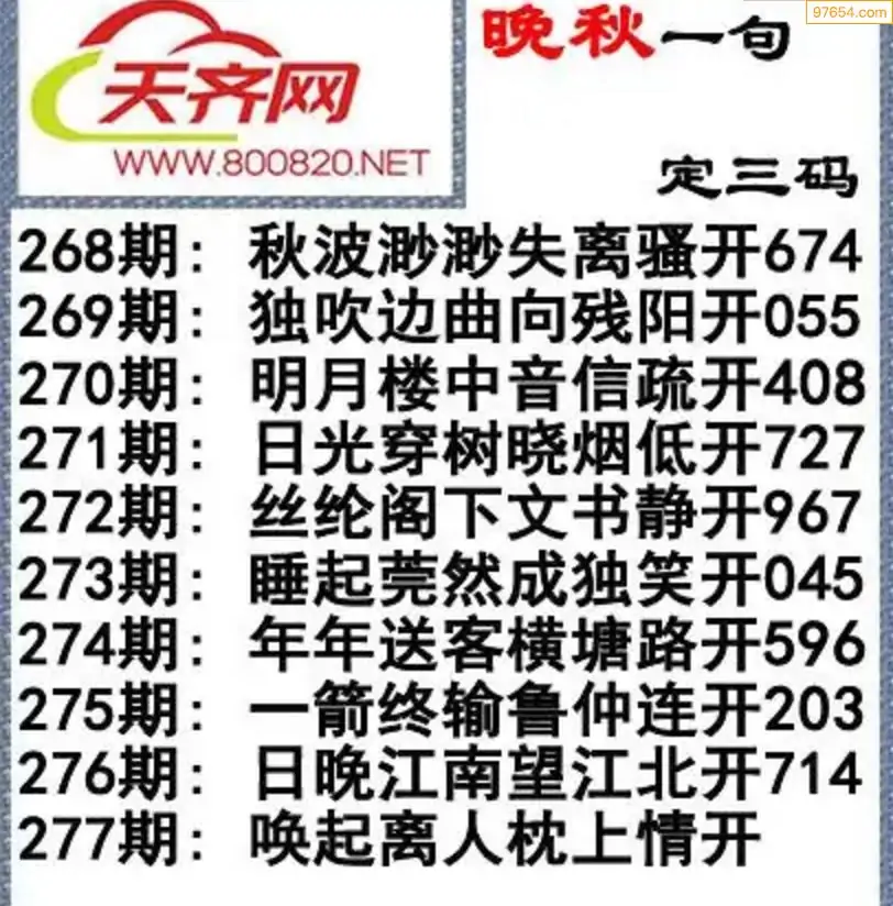 277期3D晚秋(乙种和值)谜:青年之和 D:和中之差