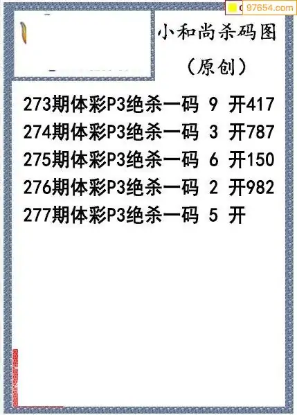 25年277期小和尚排列3杀码图
