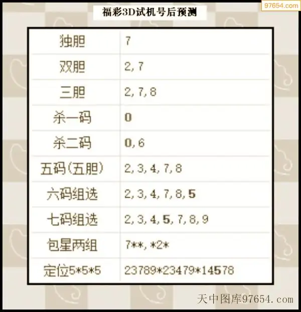 25年277期天中图库专家3D试机号后分析汇总