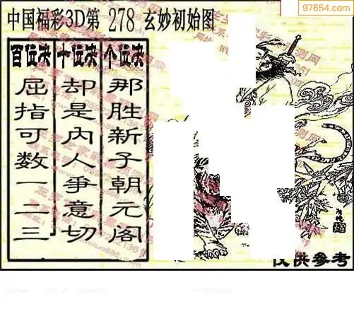 25278期福彩3D正版天宇和值谜