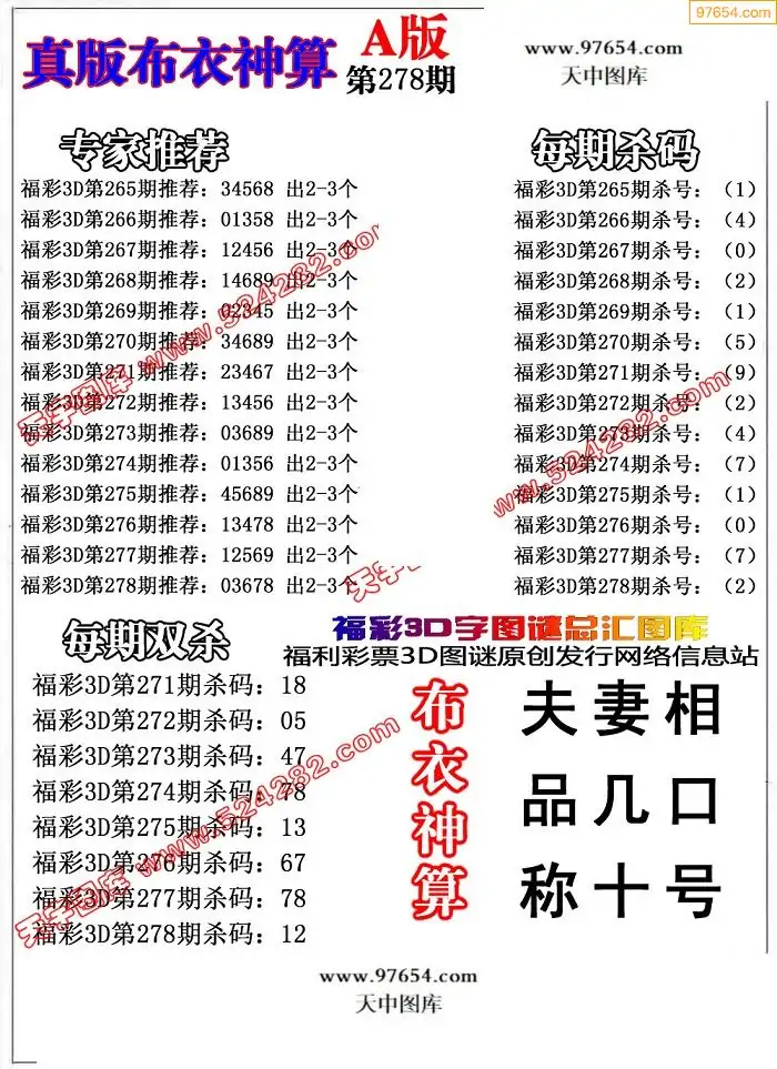福彩278期3d真精华布衣+布衣早报(转载)