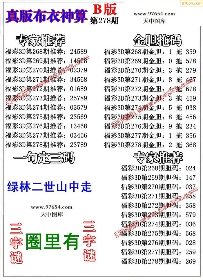 25278期早版布衣天下3D图迷