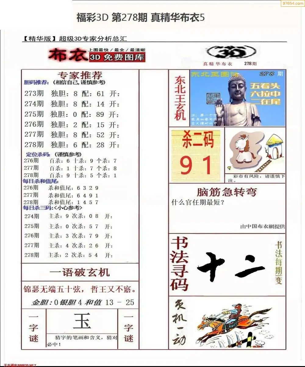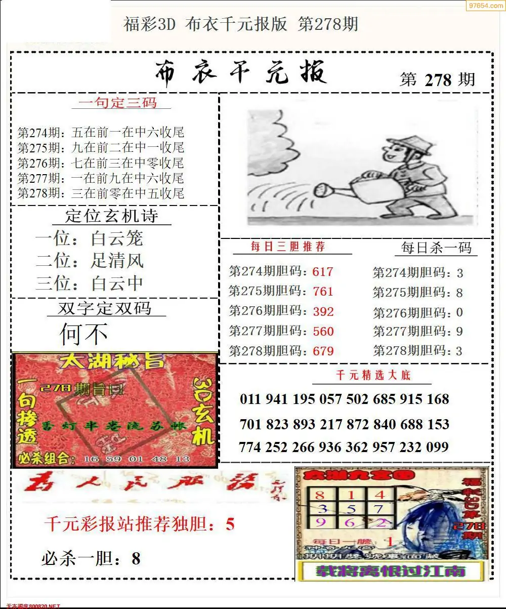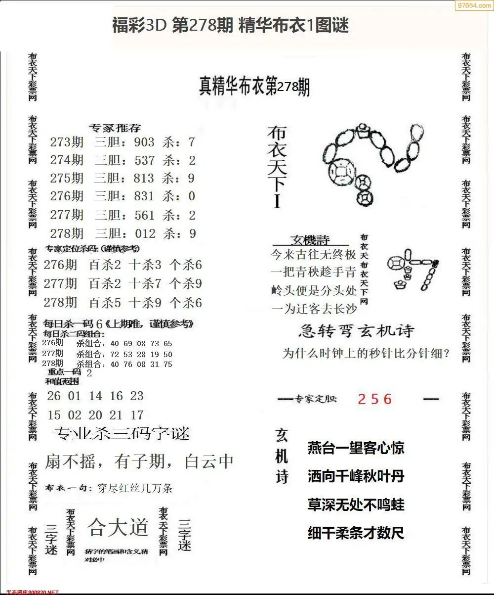 福彩278期3d真精华布衣+布衣早报(转载)