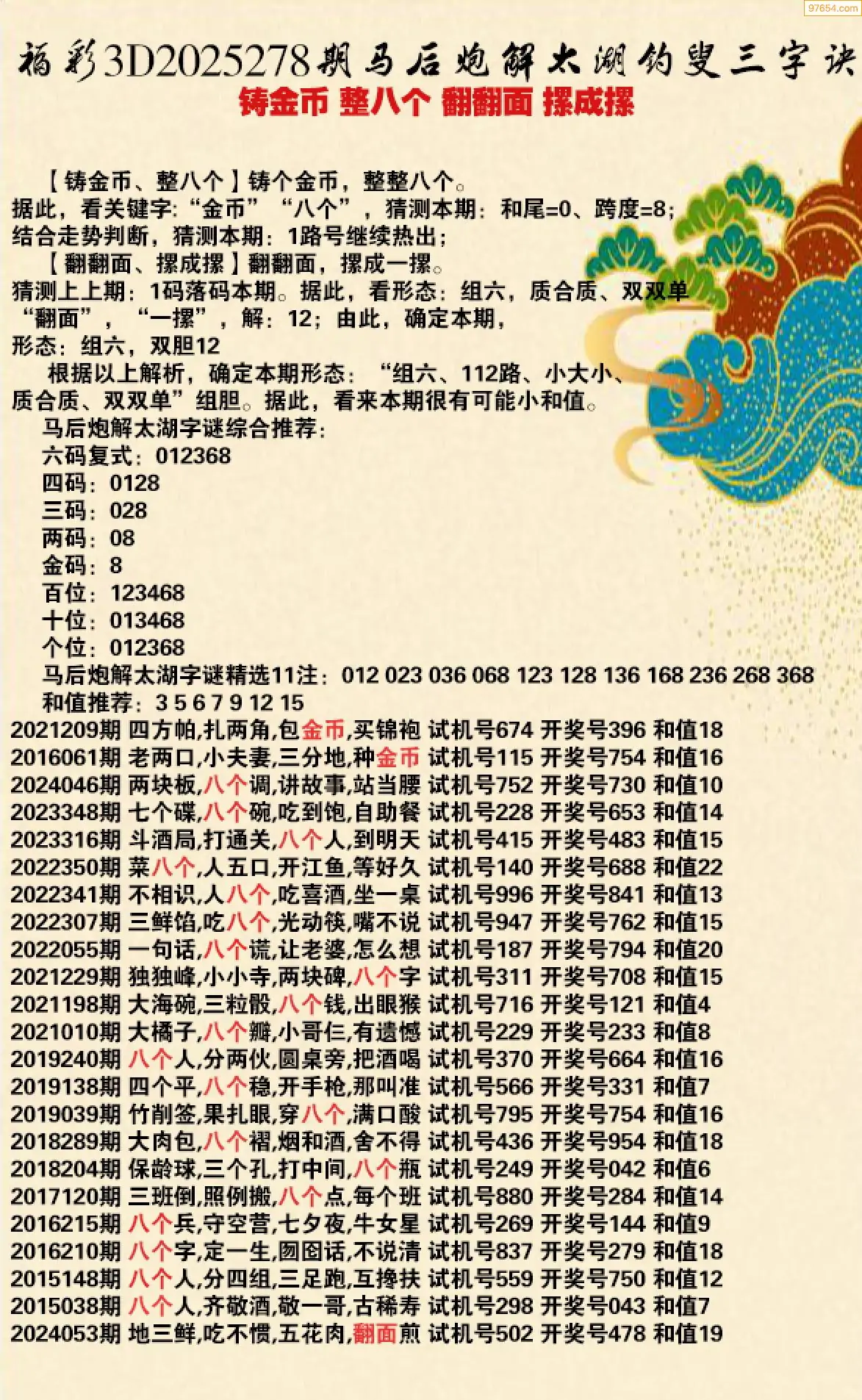 25278期福彩3d太湖钓叟三字诀历史汇总
