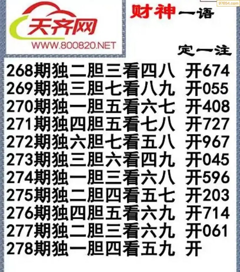 278期3D晚秋(乙种和值)谜:成长快乐 D:极乐西方