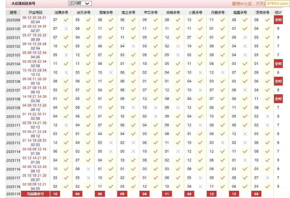 超级大乐透25119期章衣萍后区关注杀三码