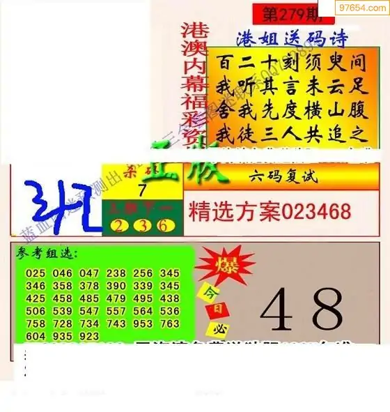 25年279期福彩仙姑综合图