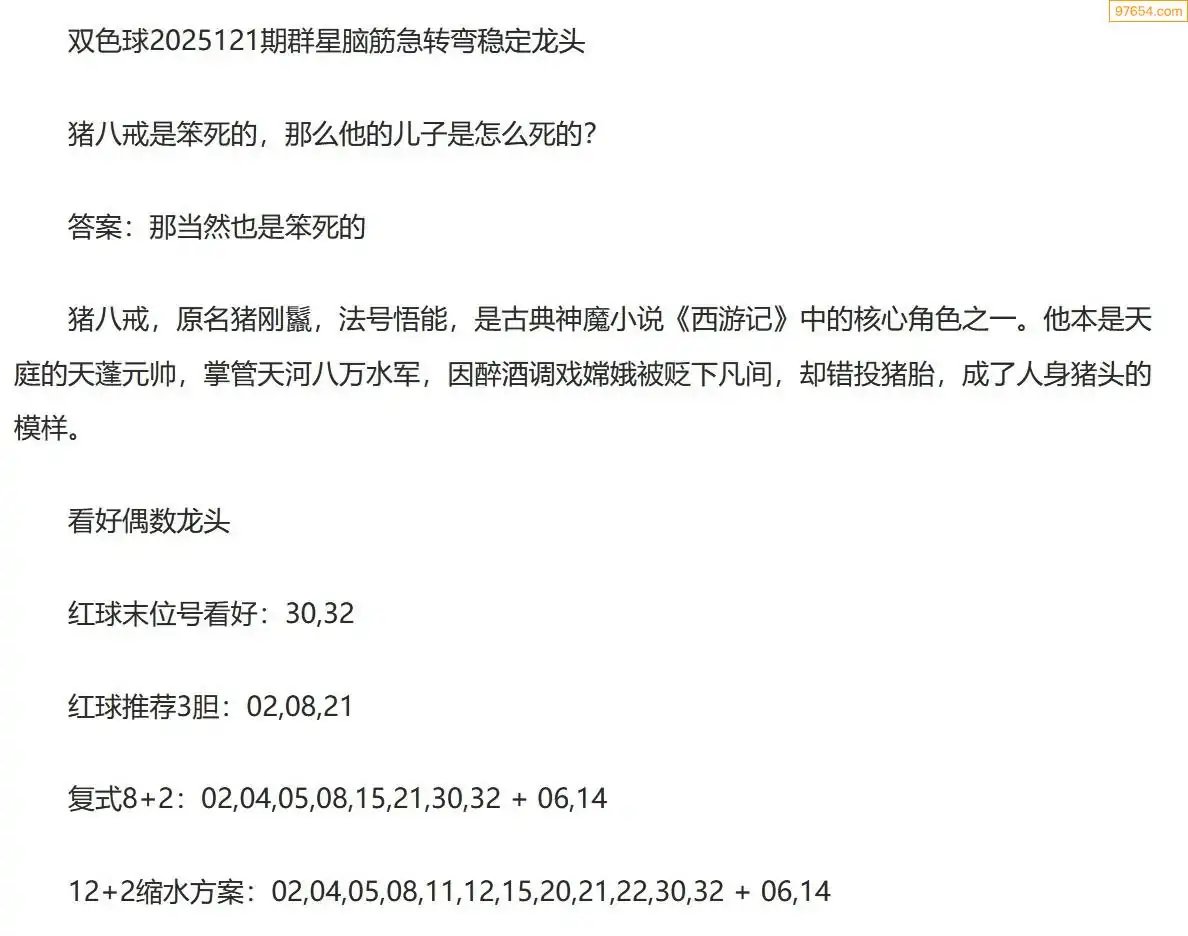 群星双色球25年121期脑筋急转弯龙头谜语