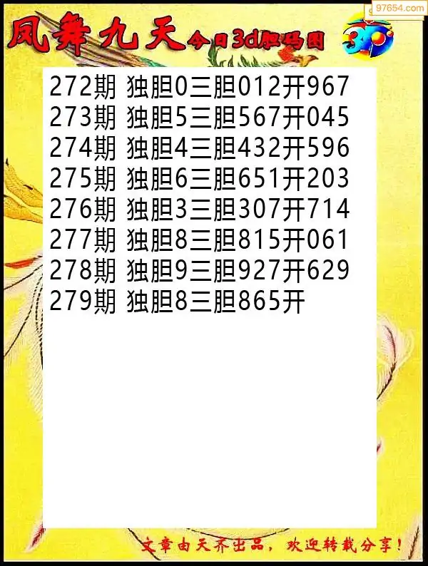 (8)25年279期今日3d各类彩报汇总