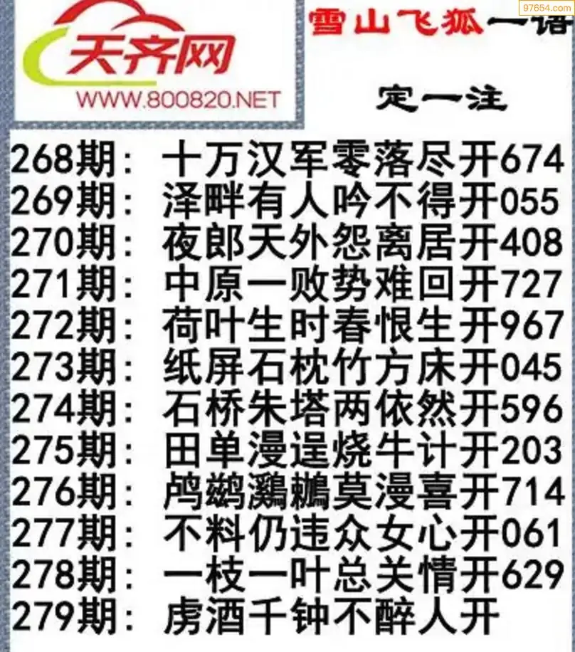 彩票3d字谜279期雪山飞狐一语定一注