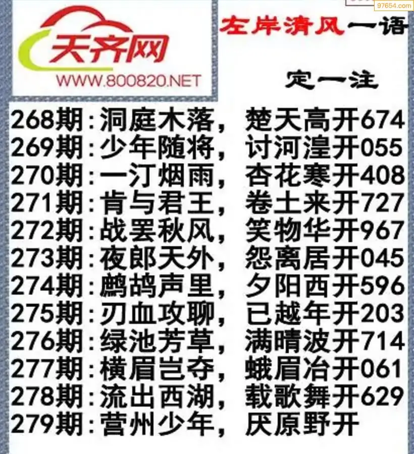 福彩3d左岸清风25年279期一语定一注
