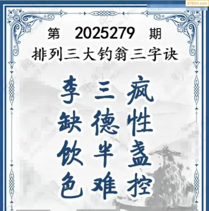 25年体彩p3第279期大钓翁三字诀