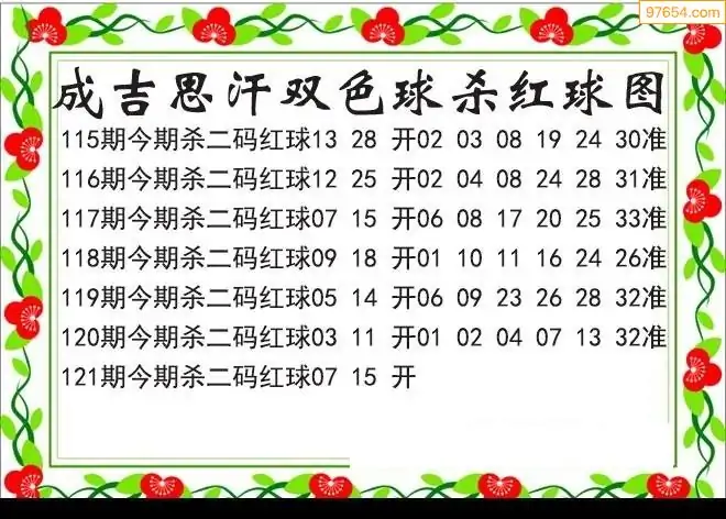 25年双色球121期成吉思汗杀二码红球图迷