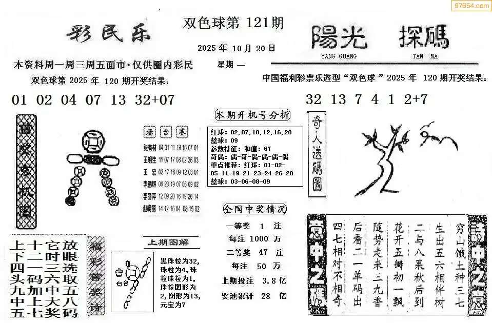 25年双色球121期彩民乐+阳光探码图谜