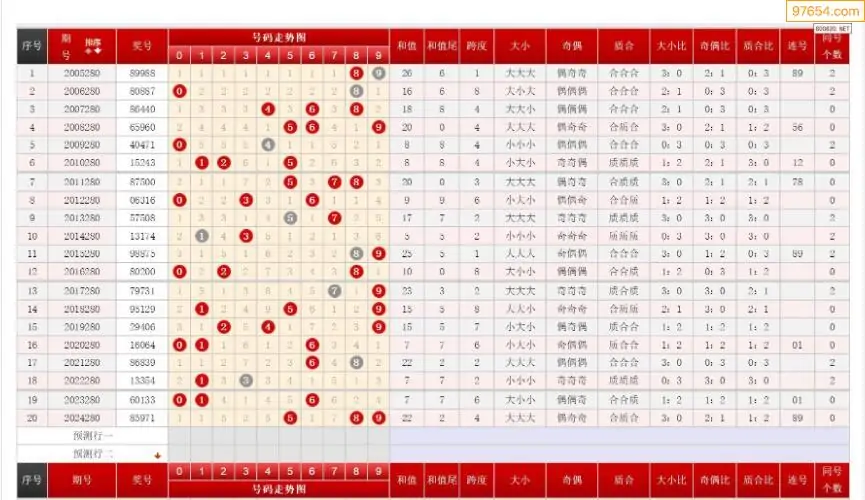 280期排列三历史号码对比图+数据走势分析