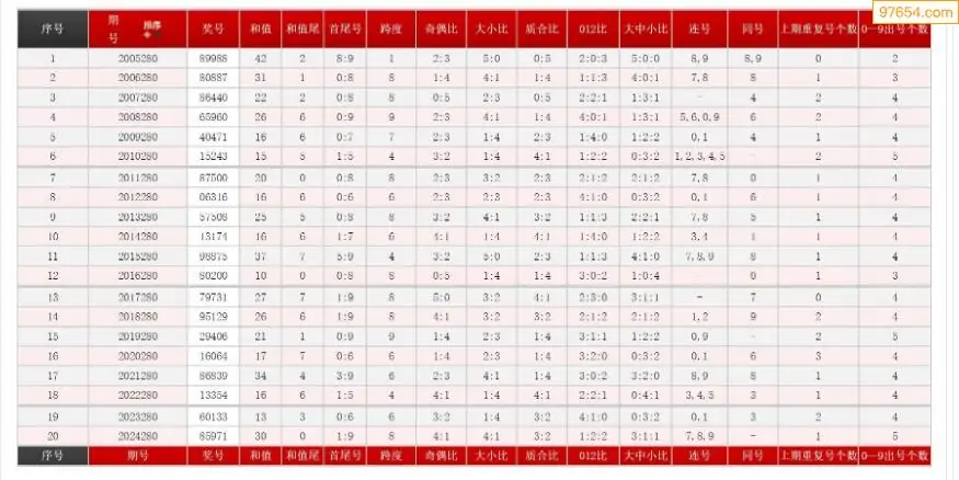 280期体彩P5历史同期对比图表+近期走势图分析