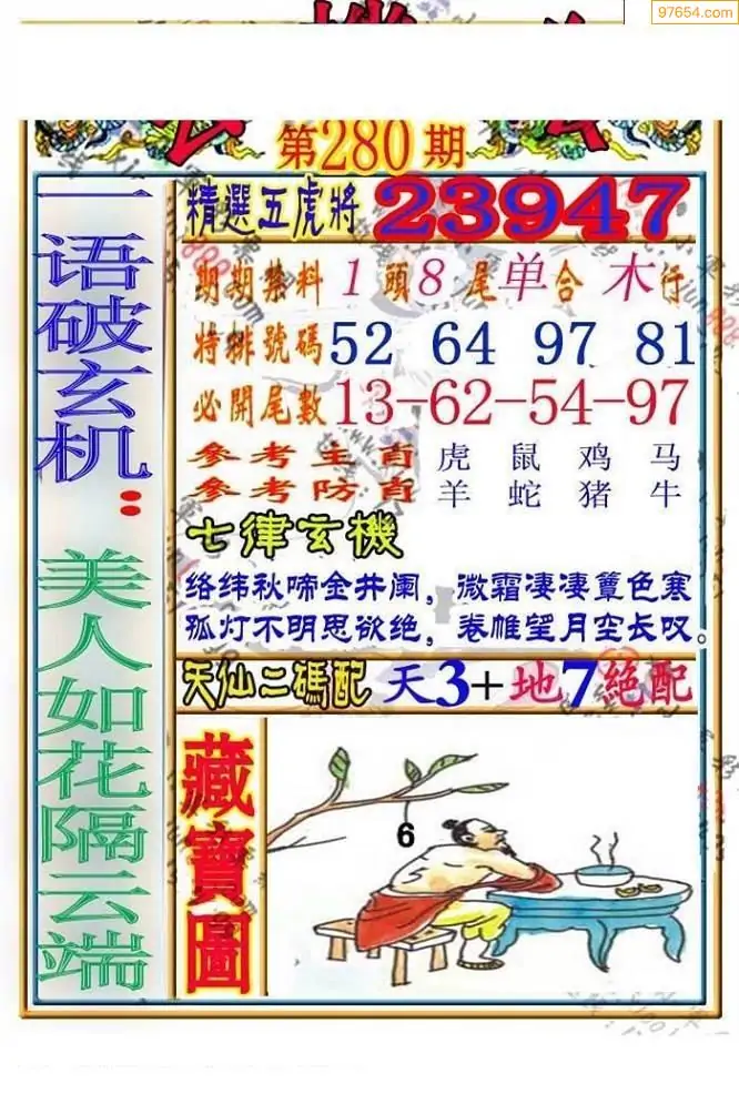 25年280期福彩仙姑综合图