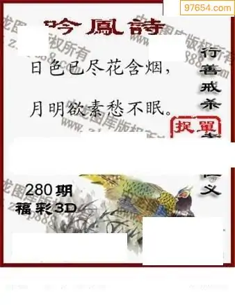 25280期福彩3D正版天宇和值谜