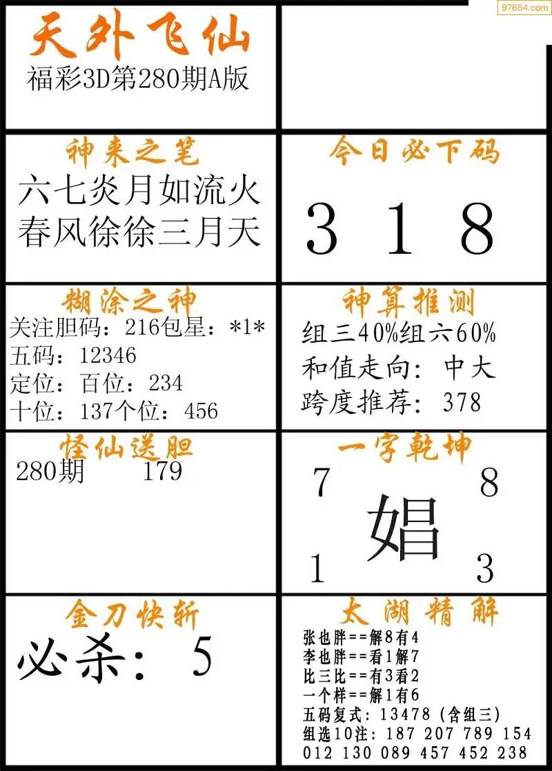 280期福彩3d天外飞仙A版