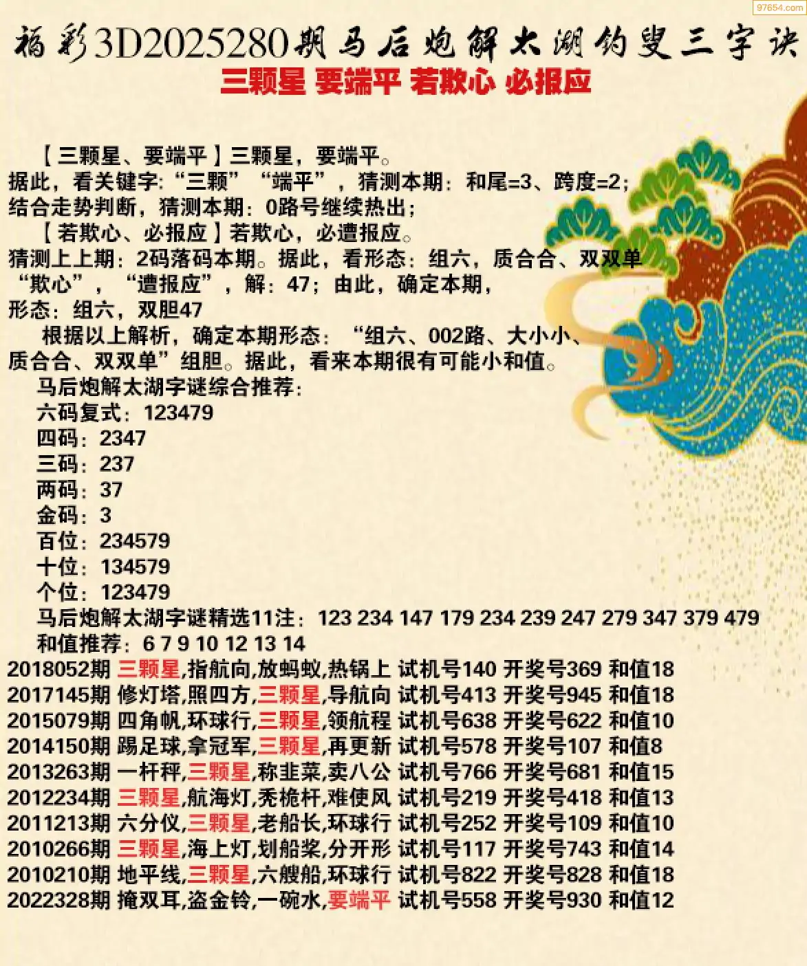 25280期福彩3d太湖钓叟三字诀历史汇总