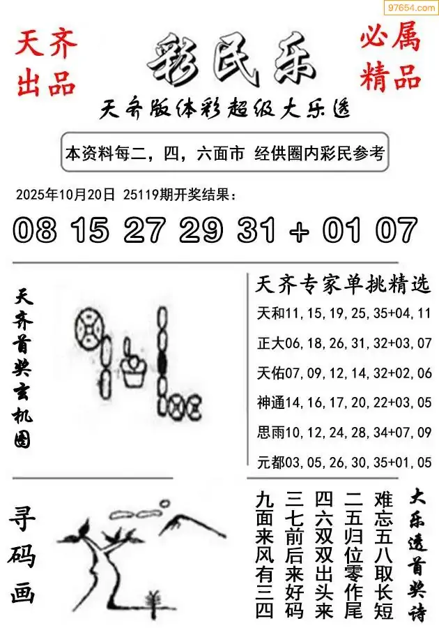 体彩大乐透2025年120期文彬下期预测前区双胆