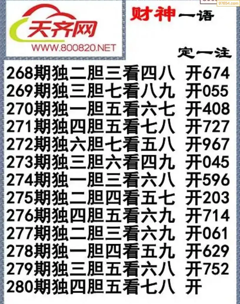 280期3D晚秋(和值)谜:本期有我 D:上中下横