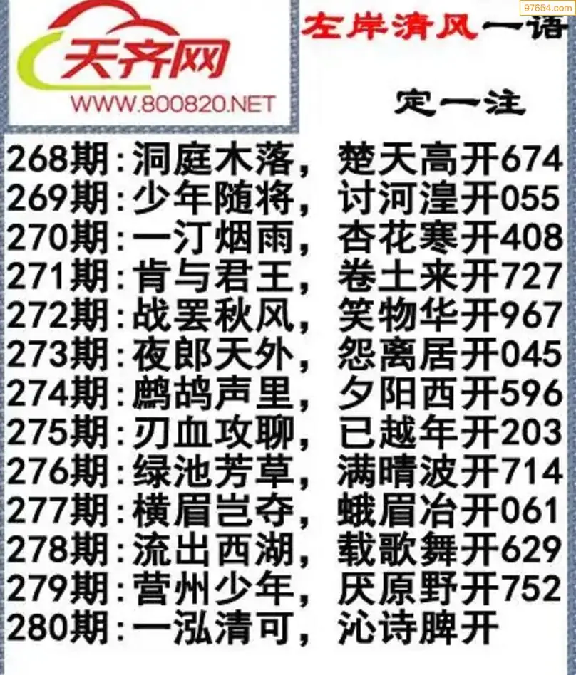 福彩3d左岸清风25年280期一语定一注
