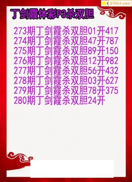 25年280期丁剑霞体彩排列3杀双胆图