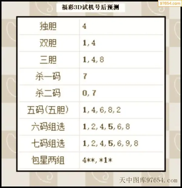 280期西南胆王预测本期3D开奖结果