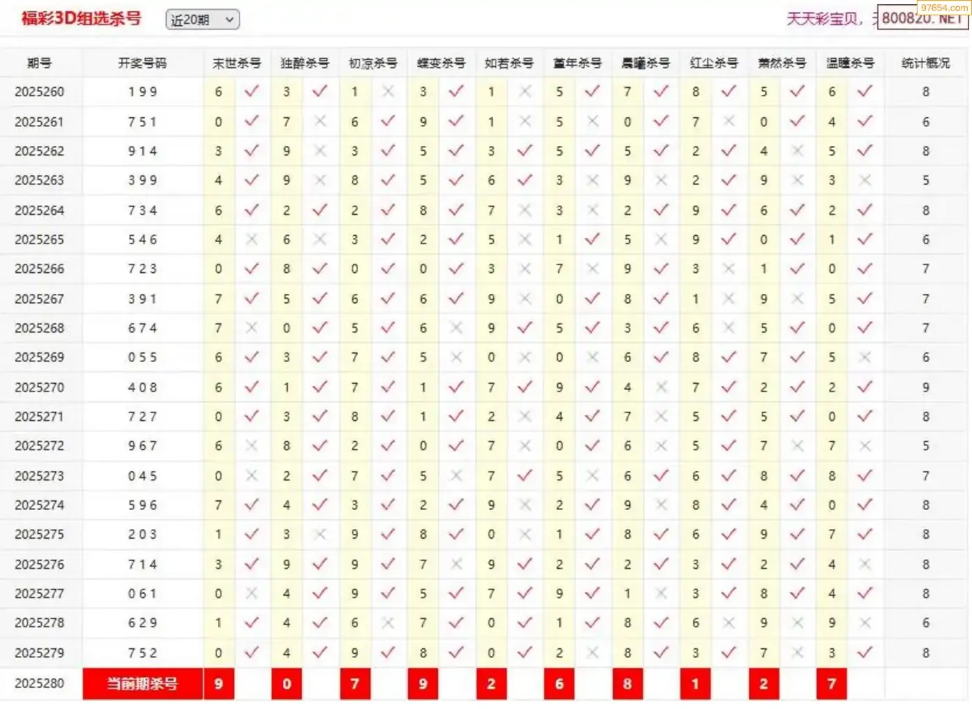25-280期福彩3d桂子飘香杀码预测 8连中
