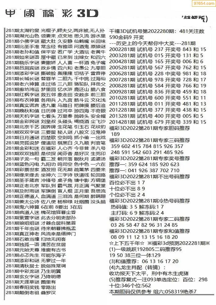 25年281期真天天图3d图迷