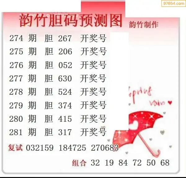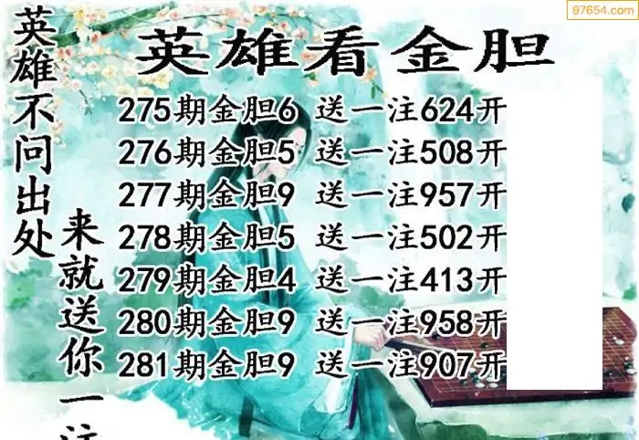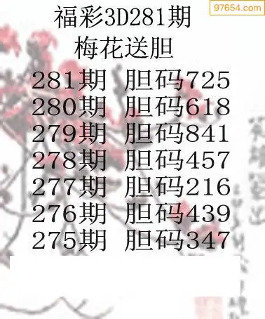 281期97654本站收集胆码出号预测