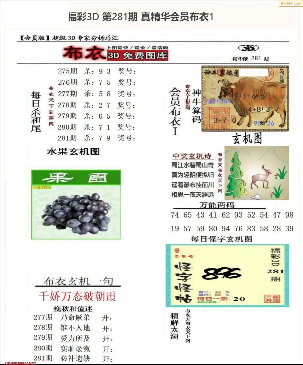 2025281期会员布衣3d图库