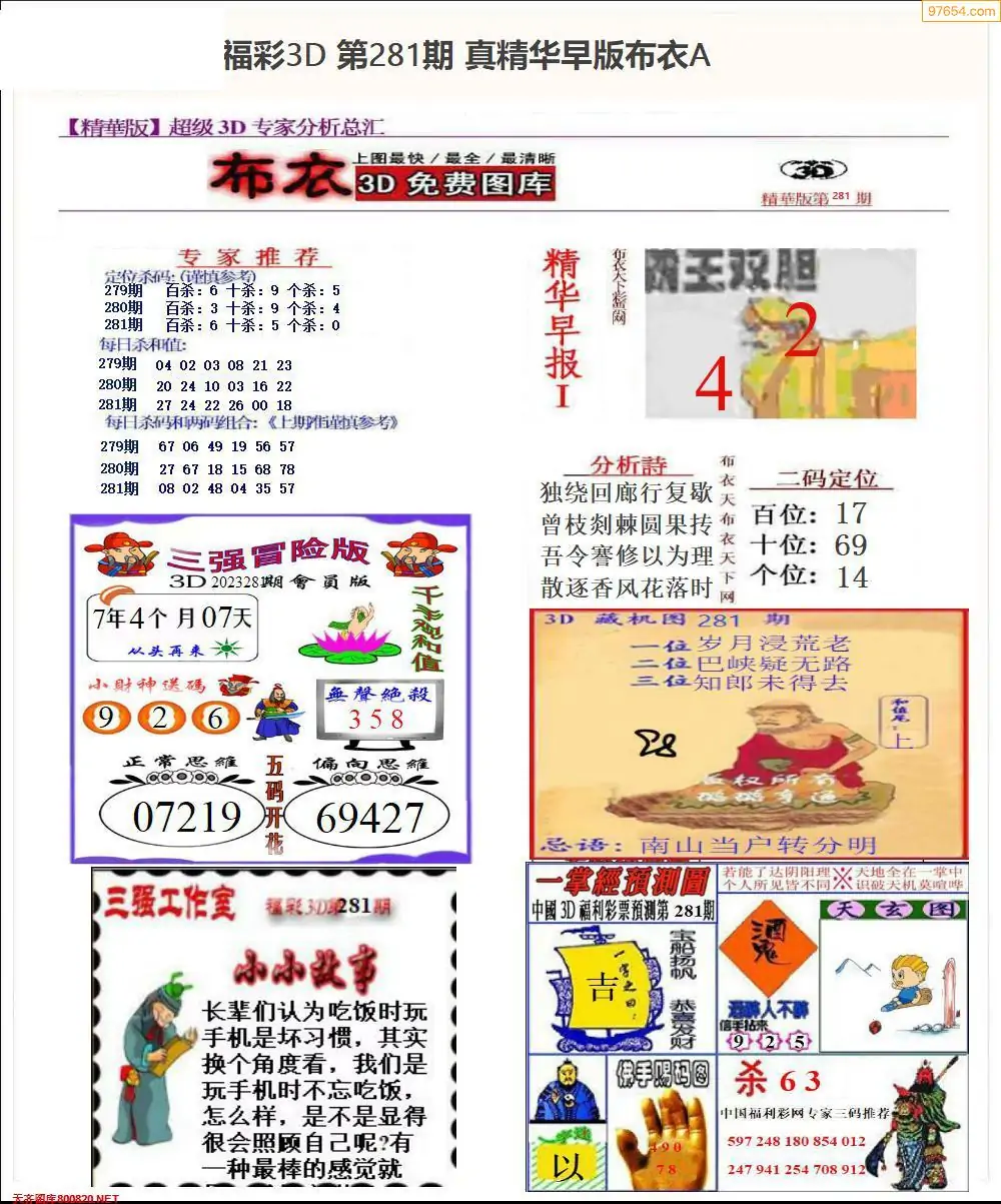 福彩281期3d真精华布衣+布衣早报(转载)