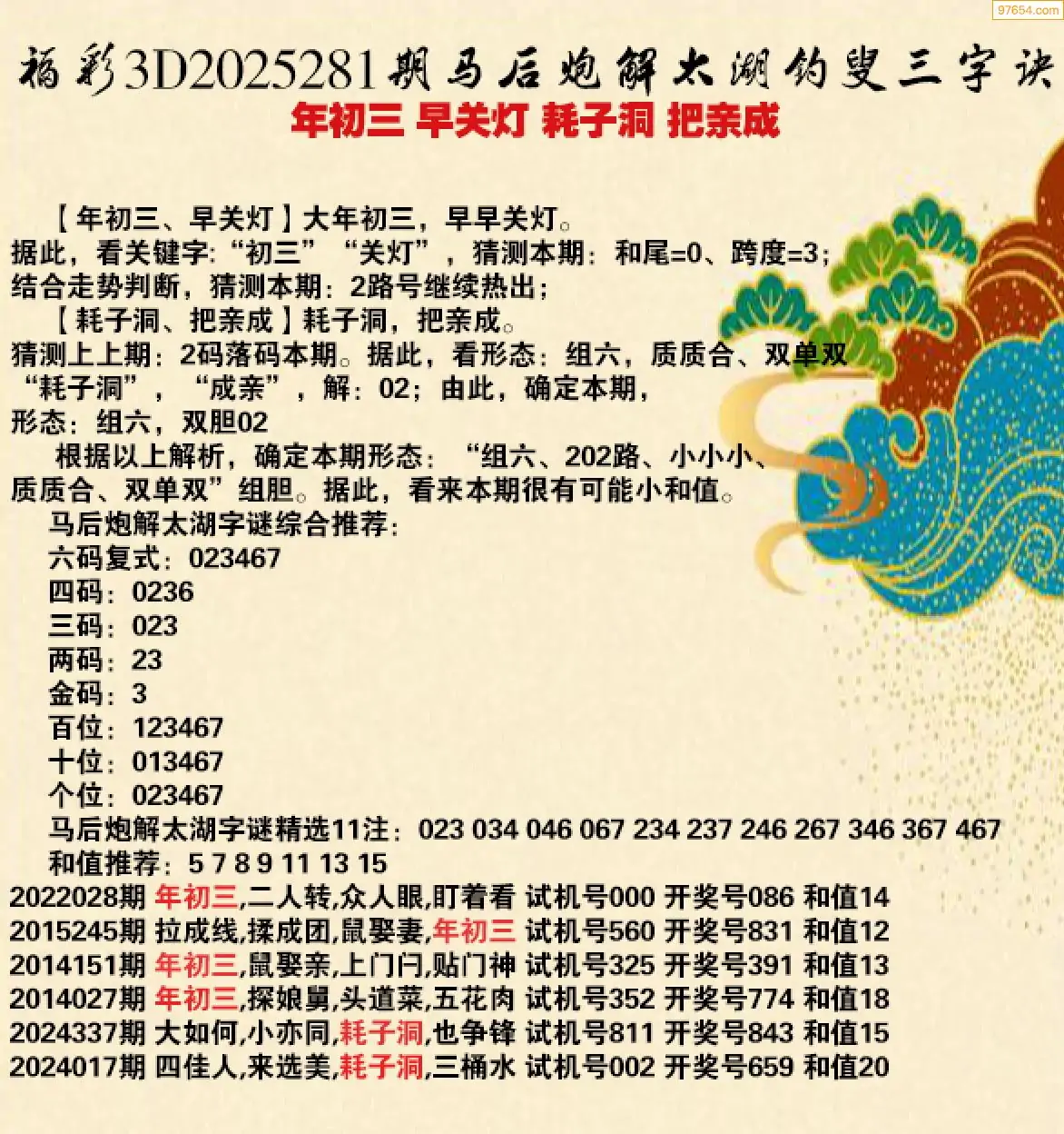 25年281期马后炮解3d太湖钓叟之 年初三