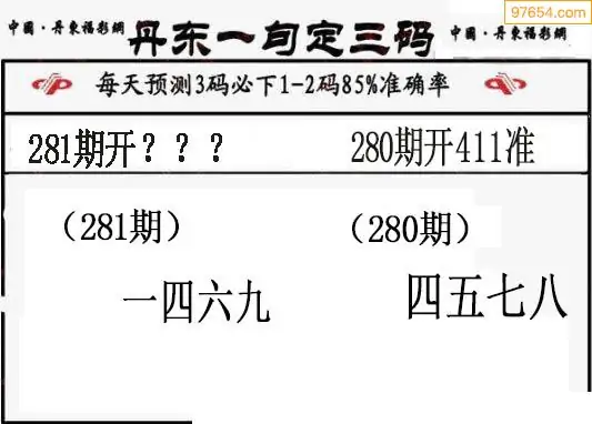 281期97654本站收集胆码出号预测