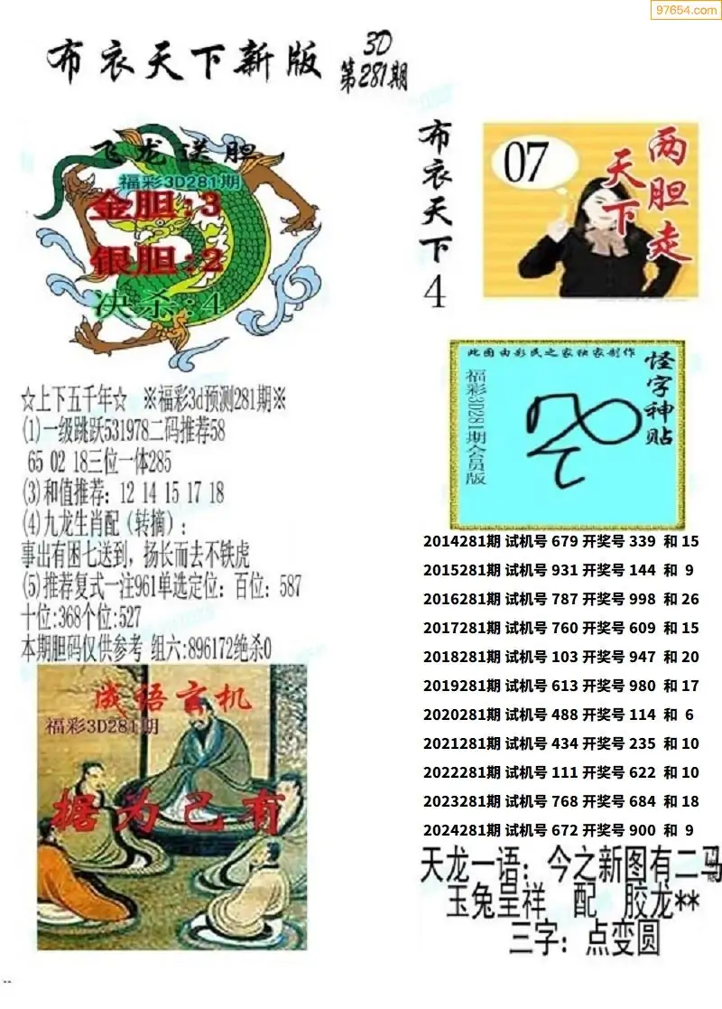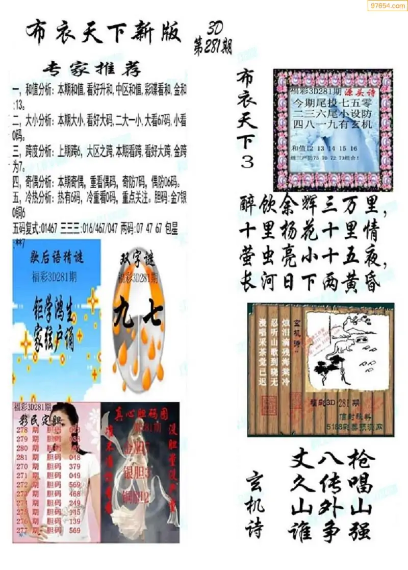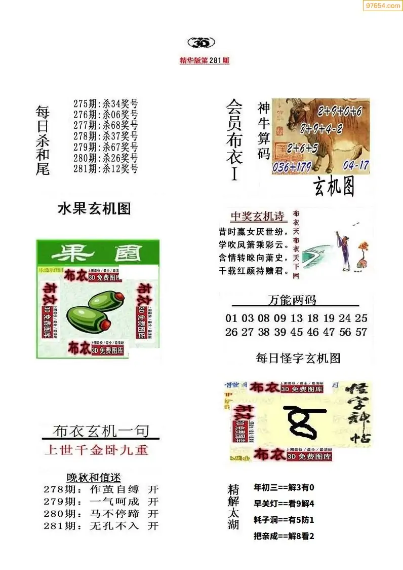 (8)25年281期今日3d各类彩报汇总