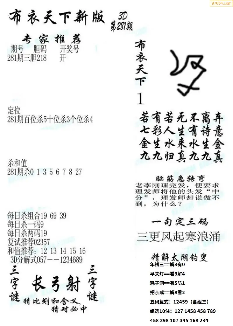 (5)25年281期福彩字谜图谜总汇