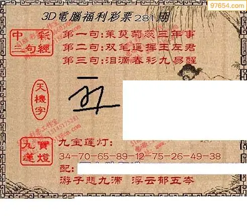 25281期福彩3D正版天宇和值谜