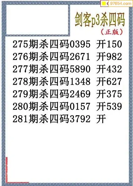 25年281期排三剑客杀码图谜